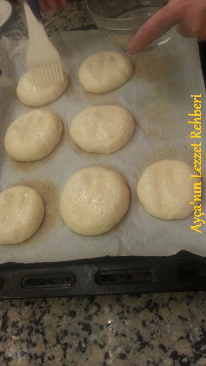 Hamur toplarının üzerini şekerli süt veya yumurta sarısı ile ıslatın.